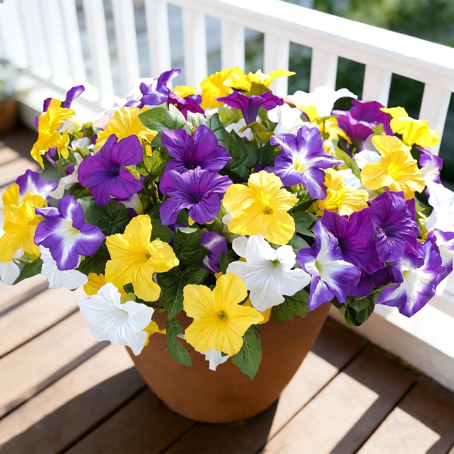 FULLMUSIC Spring Artificial Flowers for Outdoors, 4PCS UV Resistant Fake Morning Glory, Look Real Faux Silk Plants for Front Door Garden Porch Planter